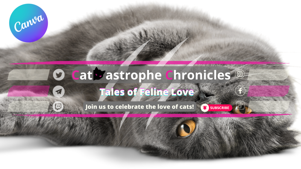 Capture the hearts of cat lovers and create an irresistible online presence with "Cat-astrophe Chronicles." Our carefully crafted banner is designed to showcase your love for cats and captivate your audience like never before. Whether you're sharing hilarious cat videos, valuable cat care tips, or heartwarming rescue stories, "Cat-astrophe Chronicles" will elevate your channel to new heights. Stand out from the crowd, make a lasting impression, and let your content shine with our powerful banner. Get your paws on "Cat-astrophe Chronicles" today and embark on a feline adventure that will leave your viewers wanting more.